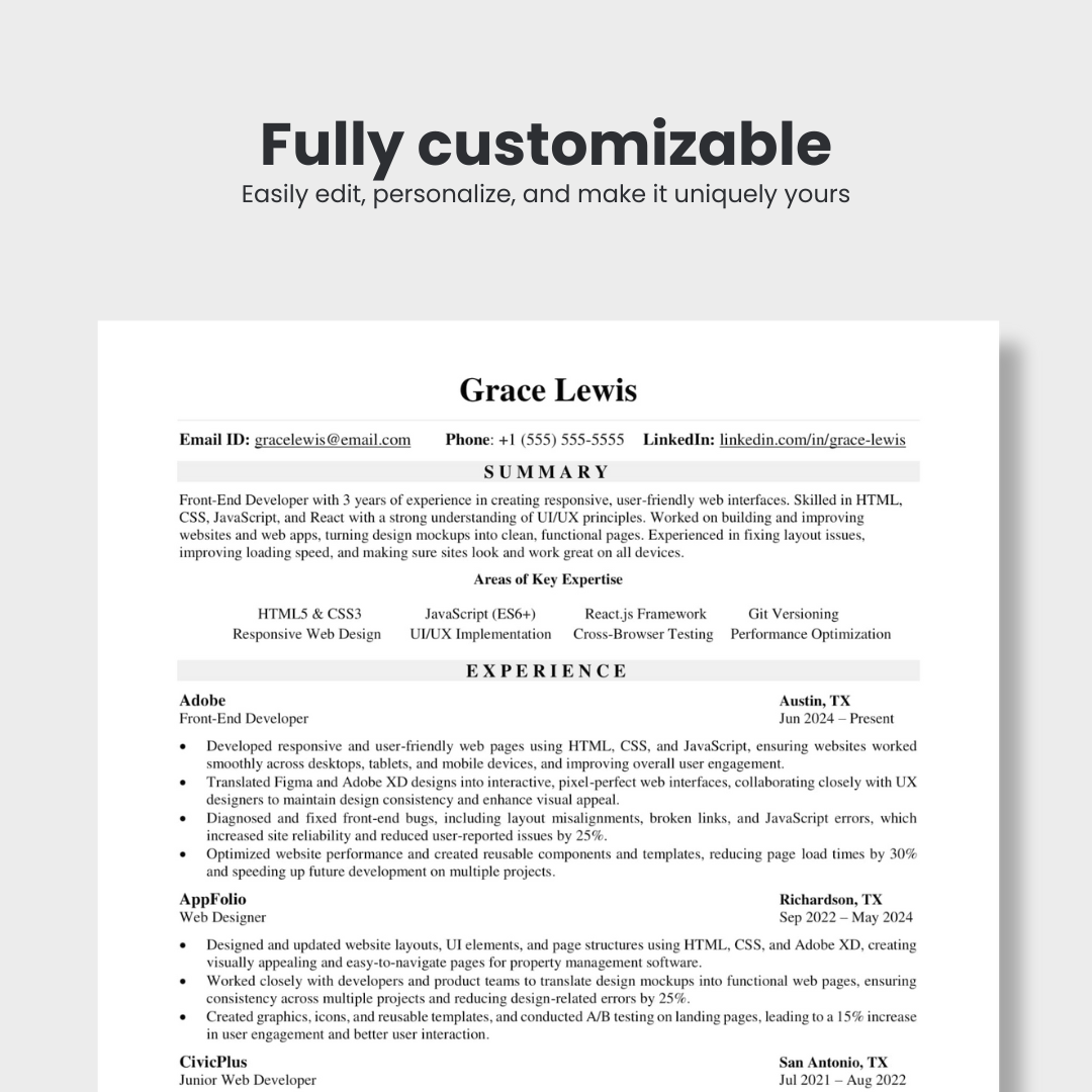 Our resume templates come in Word format, and you can easily upload and use them in Google Docs without any issues.