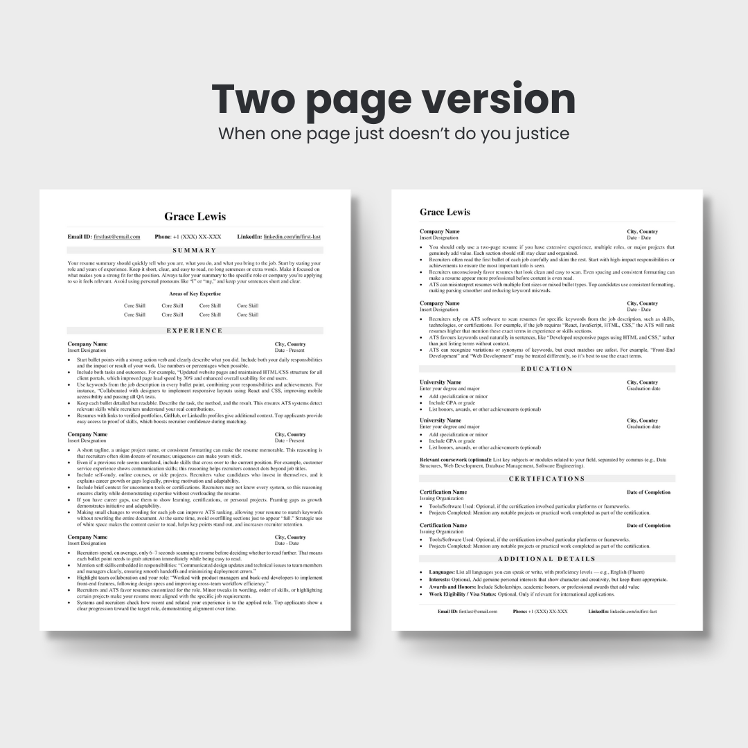 • 2 Page Resume Template