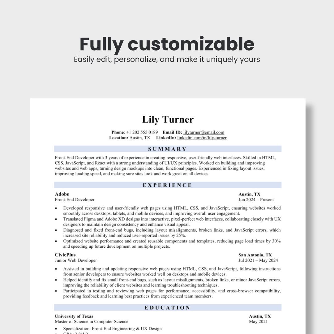 Our resume templates come in Word format, and you can easily upload and use them in Google Docs without any issues.