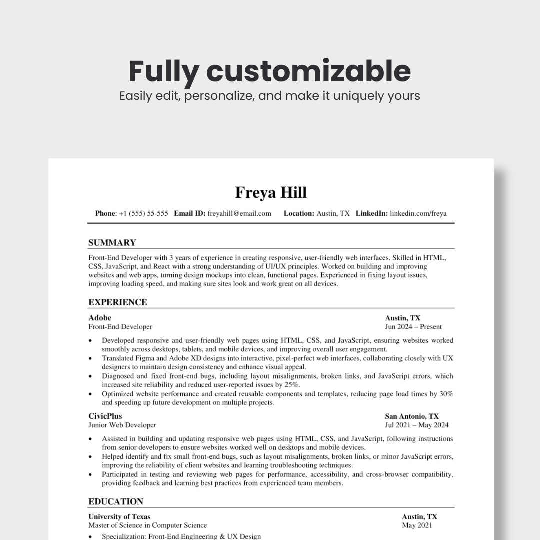 Our resume templates come in Word format, and you can easily upload and use them in Google Docs without any issues.
