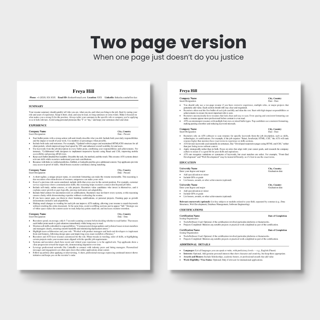 The Corporate Resume Template is a classic, ATS-friendly design widely accepted in corporate settings. It presents your experience, education, and certifications in a professional and structured format, making it ideal for any corporate application. Fully compatible with Google Docs, Microsoft Word, and Apple Pages.